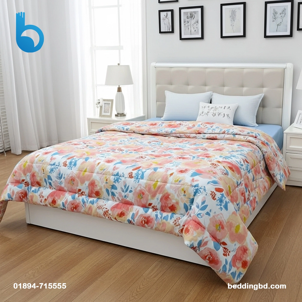 The interior is filled with a lightweight yet fluffy padding that offers balanced insulation without being bulky. Whether it’s the warmth of a winter evening or the gentle air of a spring morning, the Floral Print Comforter is built to adapt—providing a restful experience in any climate.