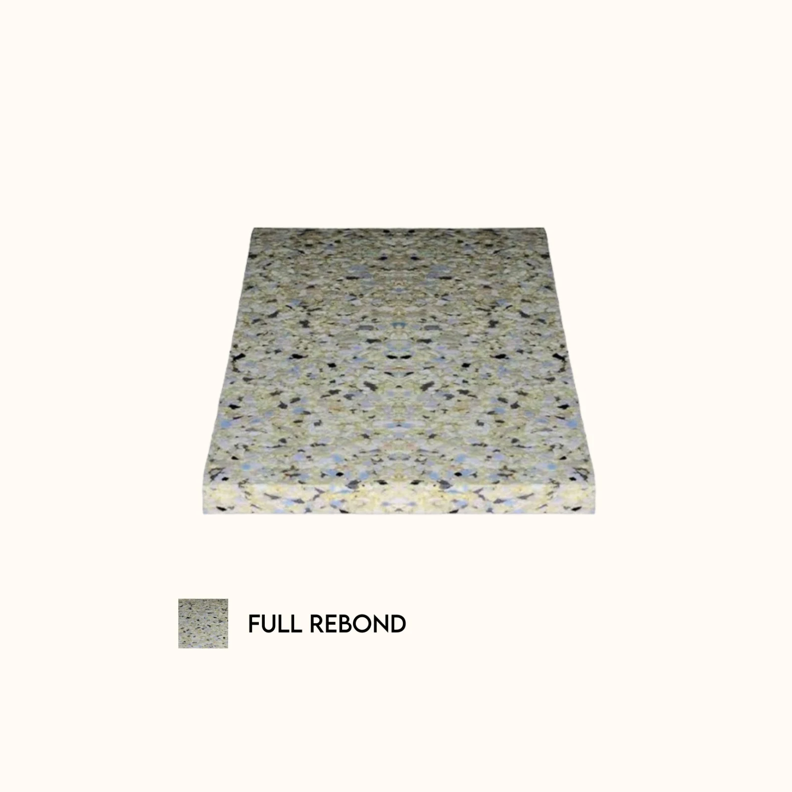 High-density rebonded foam is bonded with a strong adhesive to create a firm, resilient core that offers consistent support and long-term shape retention.