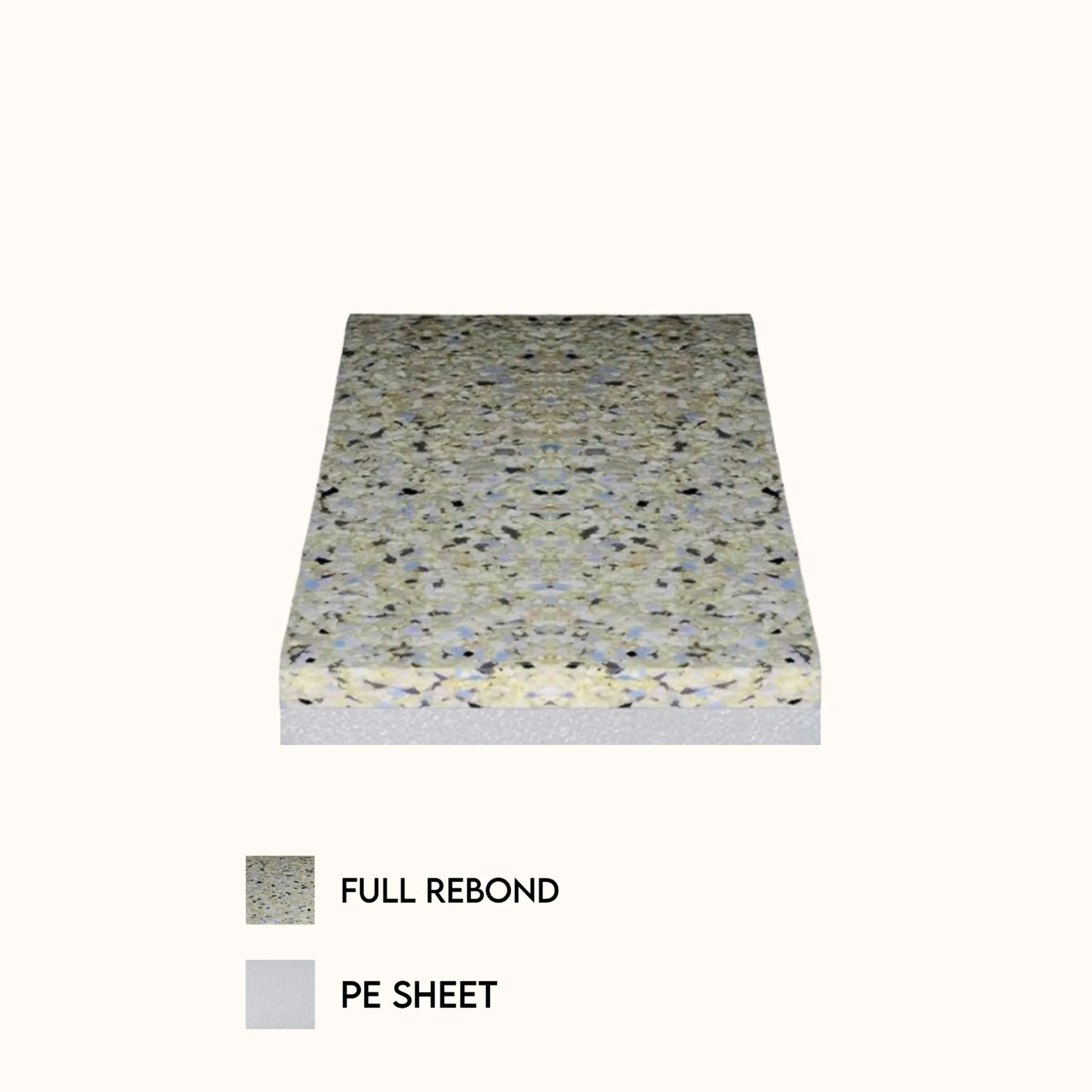 • Durable Base Layer: Rebonded foam with PE sheet provides superior stability and firmness