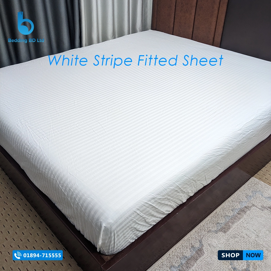 White Striped Fitted Sheet – Snug Fit, No Slipping | Bedding BD